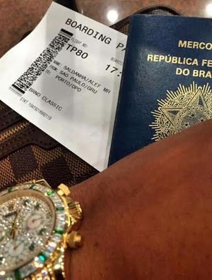 Na imagem, ele mostra o passaporte e a passagem de São Paulo com destino para Porto, no norte de Portugal, além de ostentar um suntuoso relógio. A cidade de destino praticamente matou “charada”, já que o município de Braga é vizinho à cidade do Porto.