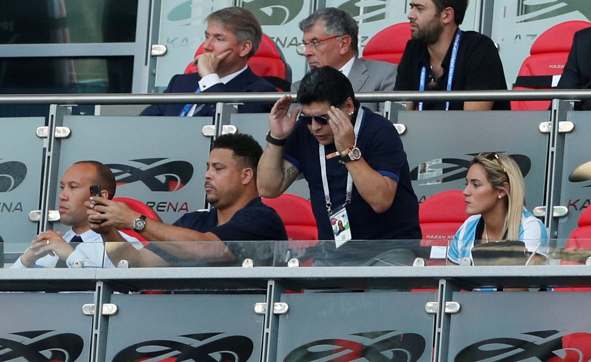 Maradona tem sido alvo de polêmicas durante a Copa e se transformou em um show paralelo desde que chegou à Rússia. O argentino, que jurava jamais se aproximar da Fifa, mudou radicalmente de tom há dois anos quando a entidade passou a ser comandada por Gianni Infantino.