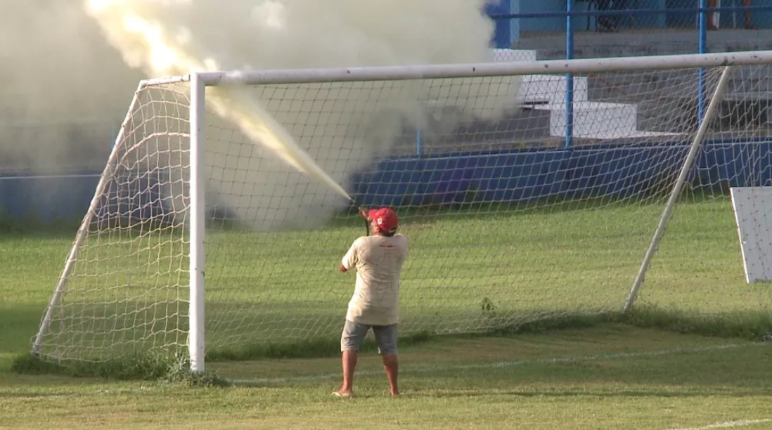 Após sofrer ataque de abelhas durante o jogo, goleiro é salvo por extintor