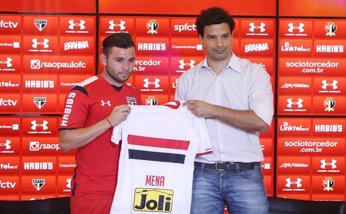 São Paulo, SP, 08 – O São Paulo apresentou nesta sexta-feira o primeiro reforço para a temporada 2016. O chileno Eugenio Mena assinou contrato de empréstimo por uma temporada e chega como opção para a lateral esquerda. Como o elenco já possui outros três jogadores para o setor, o novato prevê uma grande concorrência pela titularidade, mesmo com a grande expectativa de poder participar da Copa Libertadores.