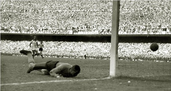 Na final da Copa do Mundo, no dia 24 de julho de 1950, o Brasil jogava pelo empate diante do Uruguai para ficar com o seu primeiro título mundial. Com 200 mil espectadores, o escrete brasileiro abril o placar com Friaça e ficou perto da conquista, mas viu os visitantes virarem com Schiaffino e Ghiggia. A derrota para os uruguaios ficou conhecida como ‘Maracanaço’.