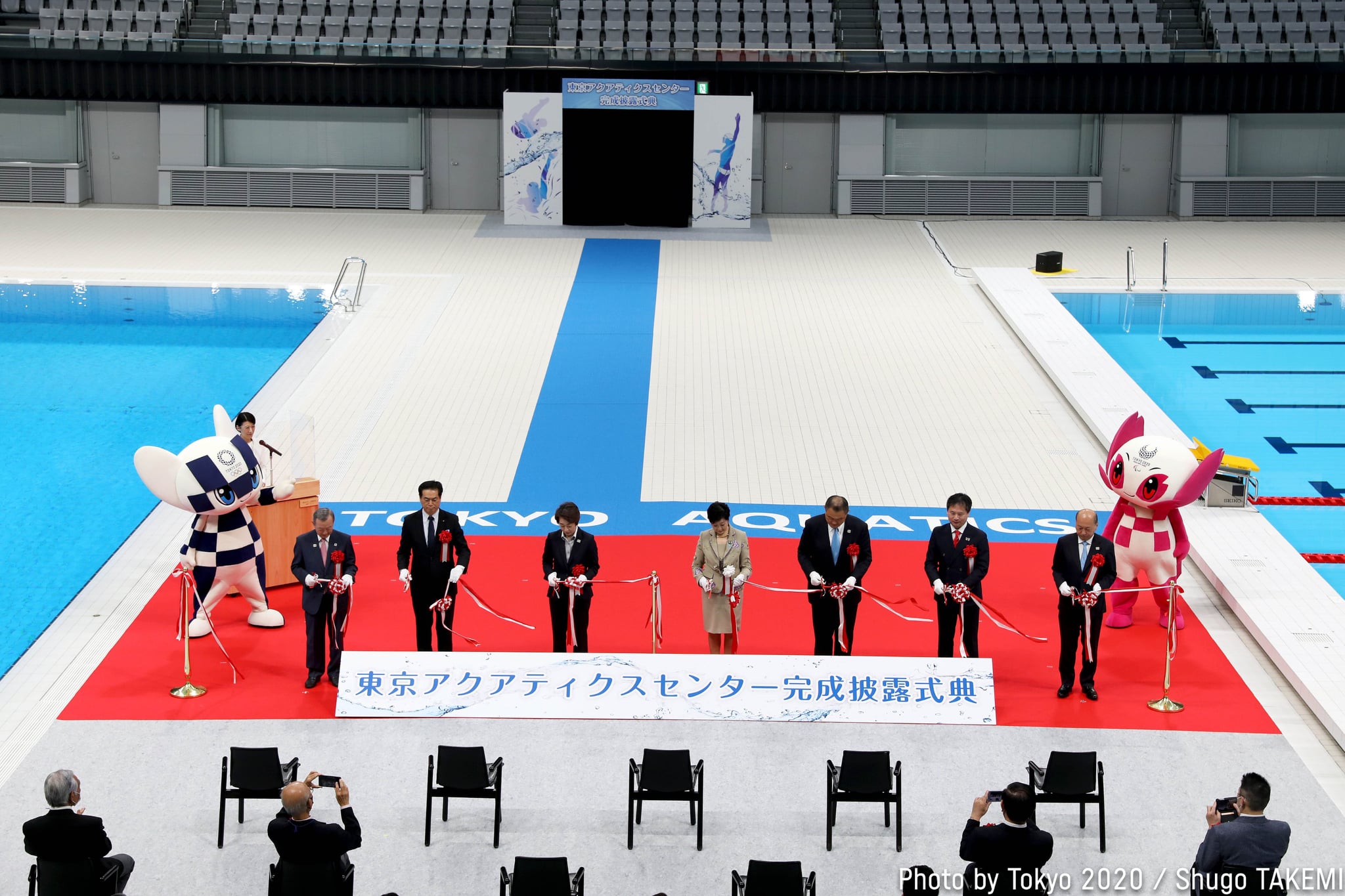 O evento contou com a presença de centenas de funcionários e teve um tom de esperança. Koike fez questão de enfatizar que o Centro Aquático, construído com um investimento de US$ 523 milhões (aproximadamente R$ 3 bilhões) vai beneficiar não só os atletas olímpicos, como também os moradores de Tóquio.