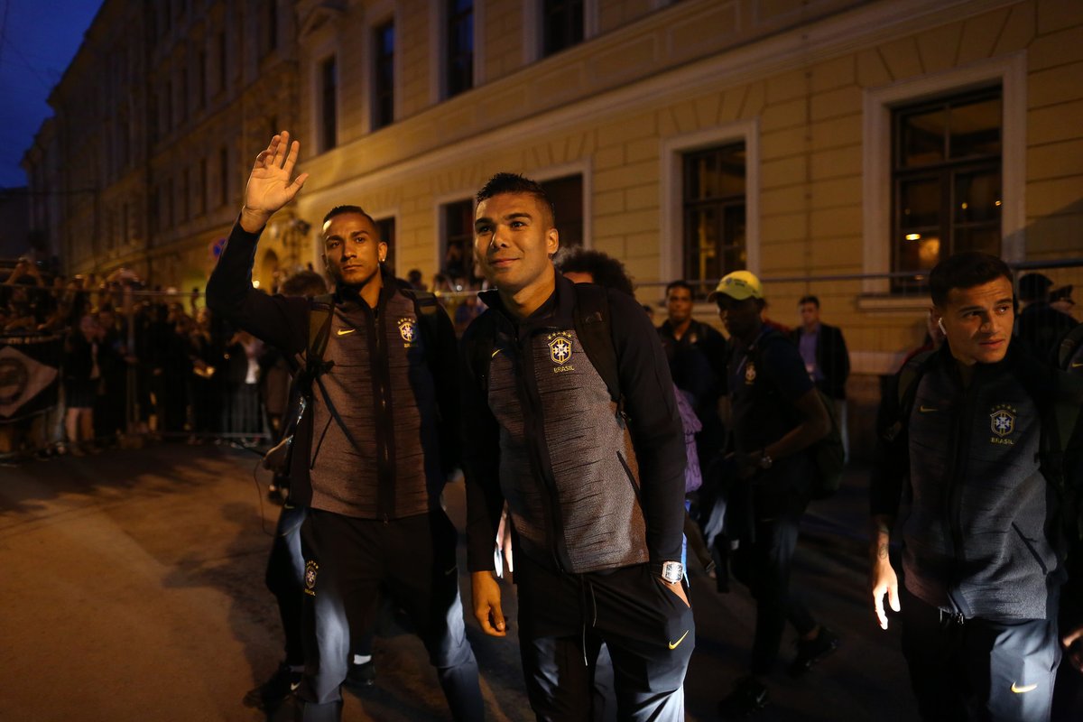 Aos gritos de “o campeão chegou”, cerca de 300 fãs se aglomeraram nos arredores do local. Nas redes sociais, diversos atletas da equipe registraram por meio de vídeos gravados das janelas dos quartos a festa que acontecia lá embaixo. “Clima da chegada no hotel em São Petersburgo! Top ou não?? Vai, Brasil!”, escreveu o meio-campista Fernandinho. “Chegada no hotel arrepiou”, postou Renato Augusto.
