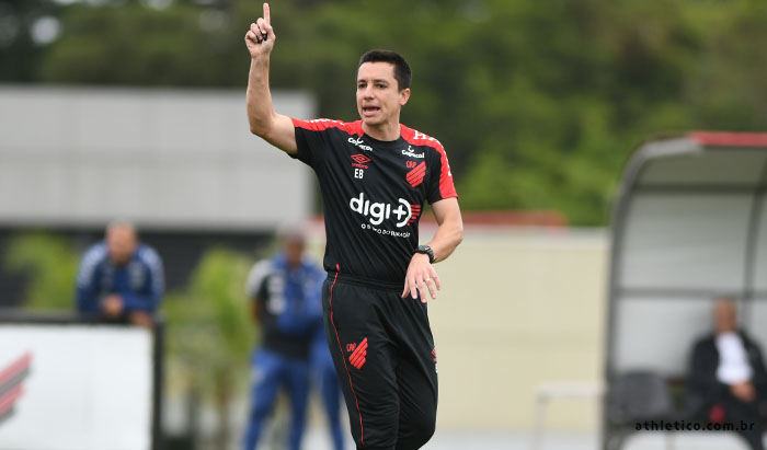 Com a bola rolando, Eduardo Barros orientou atividades de finalização e posicionamento defensivo. Em seguida, jogos em campo reduzido encerraram o expediente.