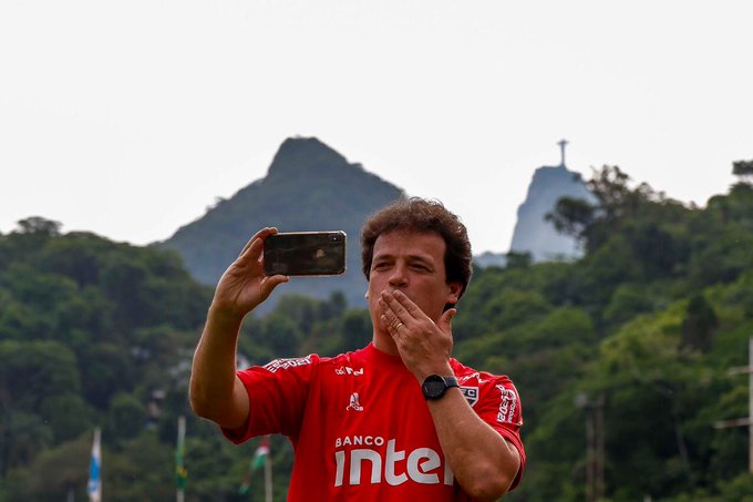 Tomando como referência a música “Aquele abraço”, de Gilberto Gil, o perfil oficial do São Paulo no Twitter ainda publicou uma foto de Fernando Diniz tirando uma foto com o Cristo Redentor ao fundo, mandando um beijo para as câmeras. A brincadeira se dá pois em um treço da canção, Gilberto fala “alô torcida do Flamengo, aquele abraço”.