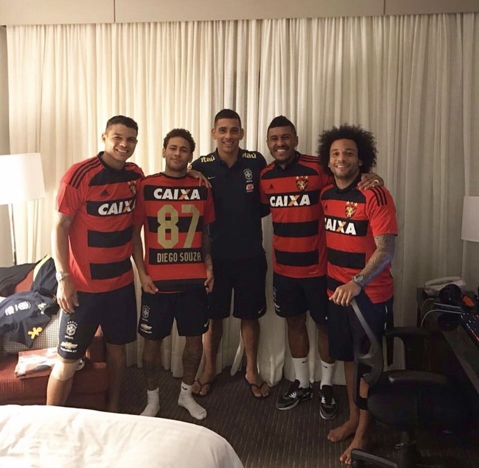 Mais do que brincar com as “contratações”, Diego Souza ainda deixou a camisa 87, que é sua, com Neymar.