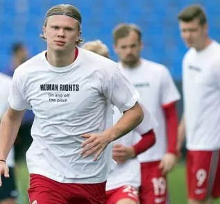 A seleção norueguesa entrou em campo no duelo com a Turquia, no sábado, vestindo camisetas com os dizeres “Direitos Humanos dentro e fora do campo”, seguido de uma lista com os países que até aquele momento se uniam à causa (no caso, Noruega e Alemanha). Por fim, o questionamento “Quem é o próximo?”, convocava as demais seleções a se manifestarem.