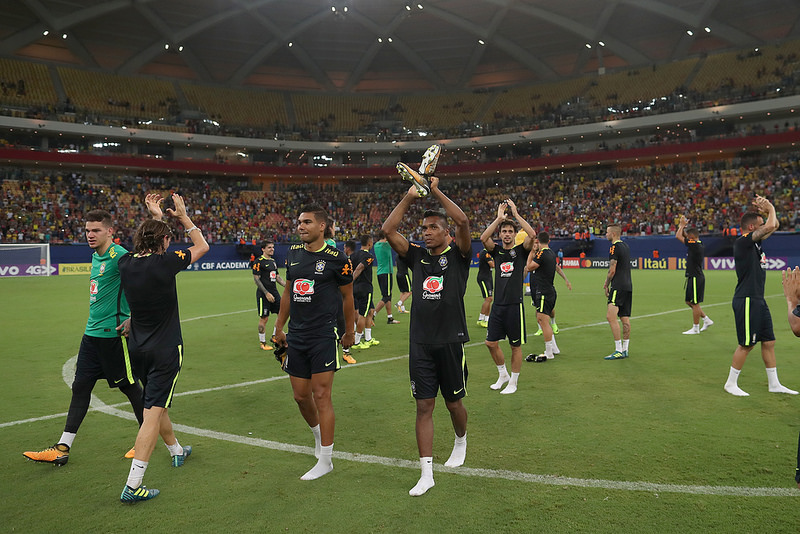 Com os portões fechados, o técnico Tite comandou o primeiro treinamento coletivo na visita à capital do Amazonas e testou o atacante Roberto Firmino e o volante Fernandinho nos lugares de Gabriel Jesus e Casemiro, respectivamente, no time considerado titular em atividade de campo reduzido.