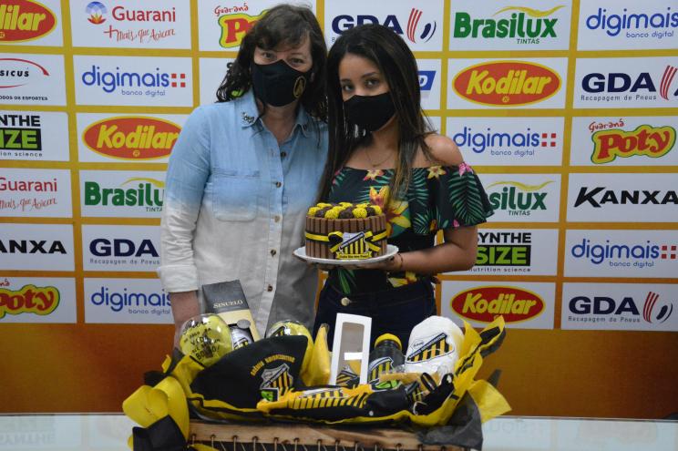 O prêmio foi uma cesta com produtos personalizados do Novorizontino. Taças, vinho, toalha, bandeira de mesa, capa de chuva, máscara, além de uma camisa oficial e um bolo todo decorado.