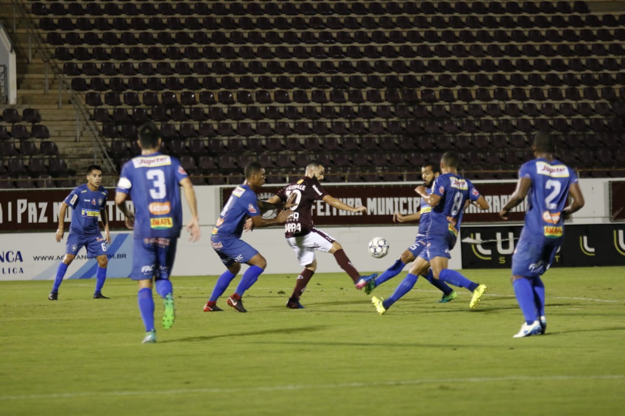O primeiro tempo foi de muita dificuldade para a Ferroviária, que esbarrou em uma defesa bem organizada do Cianorte. As melhores chances do time de Araraquara foram com Caio Mancha, que apareceu bem posicionado em três oportunidades. Na melhor delas, aos 45 minutos, ele cabeceou bem para grande defesa de João Gabriel. No rebote,o atacante ficou com a bola e chutou, mas novamente o goleiro adversário foi bem e defendeu.