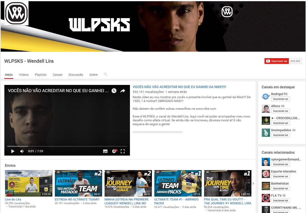 Wendell recebeu a promessa de uma proposta. A oferta foi tentadora. Desde agosto, o canal de YouTube WLPSKS, uma mistura do nome do jogador e do prêmio Puskas, está no ar. Em dois meses são quase 200 mil inscritos e um pouco mais de três milhões de visualizações. Números impressionantes.