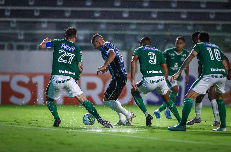 Contudo, aos poucos o Grêmio melhorou em campo e ditou as ações dentro das quatro linhas. E poderia ter aberto o placar em chute de Orejuela, aos nove minutos, e com Matheus Henrique, aos 19, em chute colocado que forçou Tadeu a mandar para a linha de fundo.