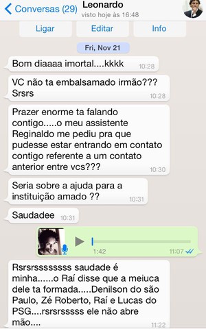 Conversa entre Zé Roberto e o criminoso que se passa pelo ex-jogador Leonardo