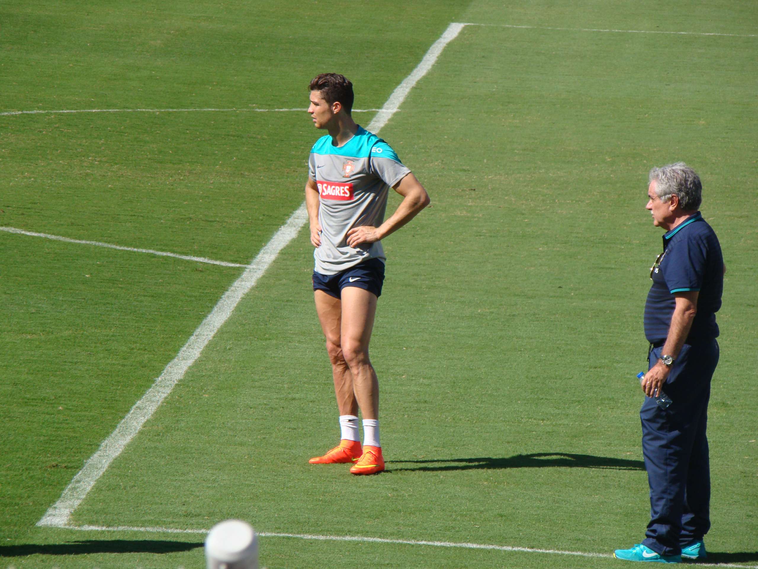 Ao fechar a atividade, o treinador mantém segredo sobre a condição física de Cristiano Ronaldo. Durante os 15 minutos que o treino pôde ser visto pela imprensa, o craque estava com uma proteção no joelho direito machucado, mas corria normalmente, sem qualquer restrição.