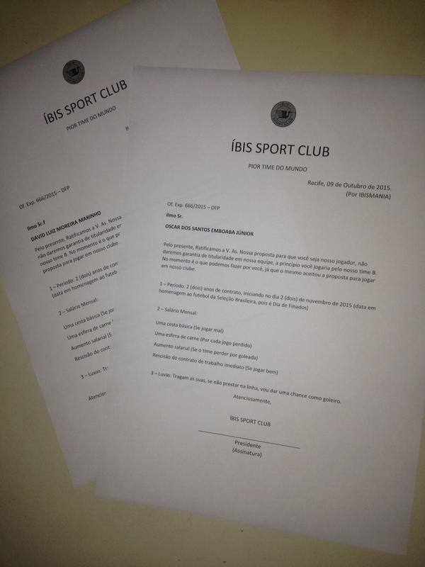 Paulista, PE, 10 (AFI) – O Íbis vem realizando um planejamento ambicioso para a próxima temporada. O “pior time do mundo” quer reforçar o seu elenco com duas peças da Seleção Brasileira. São eles, o zagueiro David Luiz, desconvocado após sofrer uma lesão, e Oscar, muito criticado após o jogo contra o Chile. Os respectivos contratos já foram enviados para os jogadores e agora é só esperar para ver o que irá acontecer.