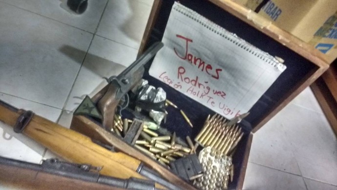 As notas incluem uma fotografia de uma caixa com projéteis de diferente calibre e armas de fogo, e o texto em letras vermelhas “James Rodriguez, Legião Holk te vigia”. As mensagens foram enviadas a partir da conta FrekeMan, que supostamente já foi bloqueada.