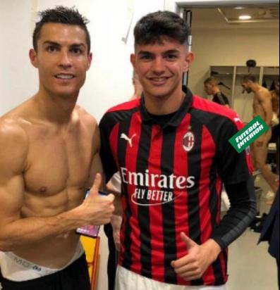 CR7 foi tietado por Raou Bellanova, do Milan, mas eles não perceberam que o zagueiro estava peladão no fundo