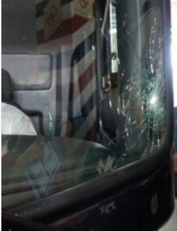 A pedra acertou apenas a frente do veículo, e ninguém ficou ferido