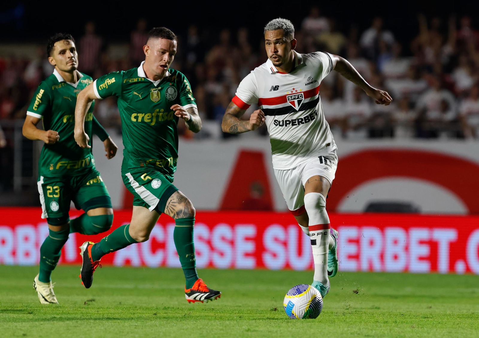 Já o São Paulo atravessa uma sequência positiva e não sabe o que é perder há cinco jogos. Atualmente na 5ª colocação, igualado em pontos e em jogos com o Verdão, a equipe liderada por Luís Zubeldía chega para o clássico confiante e quer voltar a se aproximar dos líderes e entrar entre os quatro melhores times da competição.