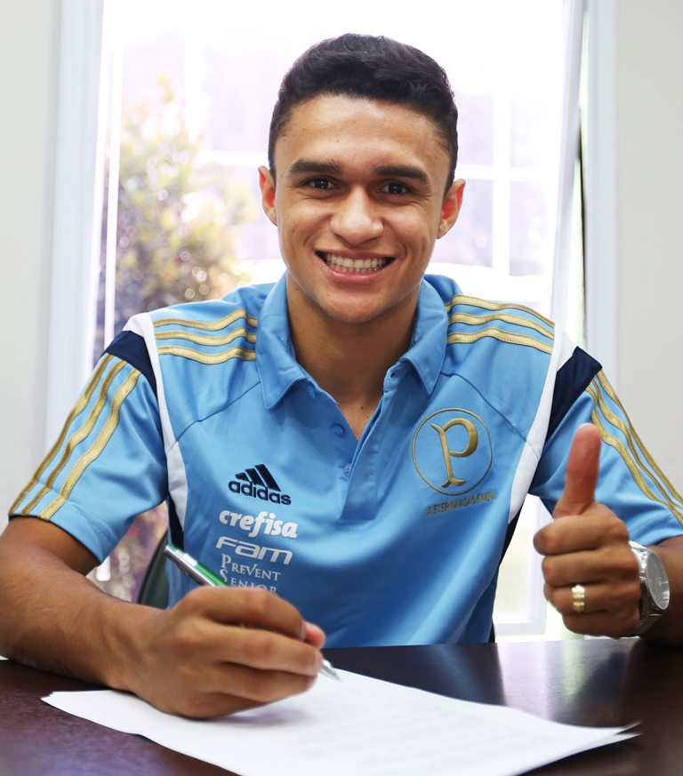 São Paulo, SP, 26 – Um dos principais reforços do Palmeiras para 2016, o atacante Erik (foto abaixo) enfim assinou contrato neste sábado. O ex-jogador do Goiás, eleito Revelação do Brasileirão de 2014, passou por exames médicos, visitou parte das instalações do clube e já fez elogios à estrutura do seu novo time.