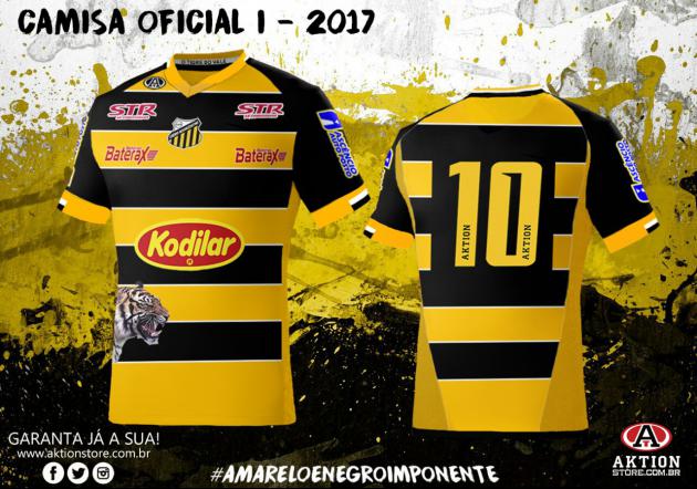 Mantendo a tradicional camisa bicolor em preto e amarelo, a camisa titular terá o escudo do time centralizado. Detalhe na nuca com a frase: “O Tigre do Vale”.