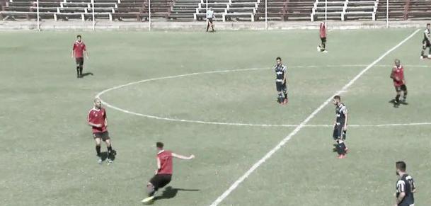 Lance do jogo-treino desta quinta-feira entre os reservas do Palmeiras e o River Plate do Uruguai