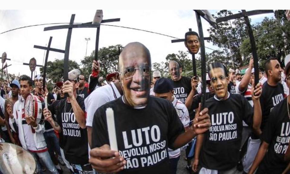 De acordo com a Polícia Militar, cerca de 200 pessoas participaram da marcha. Vestidos de preto e em silêncio na maior parte do tempo, os torcedores atacavam a gestão de Carlos Augusto de Barros e Silva, o Leco, ex-diretores, conselheiros e mandatários do clube, como Carlos Miguel Aidar, Gustavo Vieira, José Jacobson, Ataíde Gil Guerreiro. “Devolvam nosso São Paulo”, bradavam os torcedores.