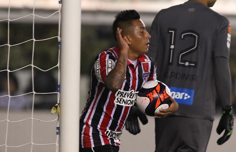 Tricolor somou três pontos no San-São disputado na Vila Belmiro graças a Luiz Araújo, autor de dois gols