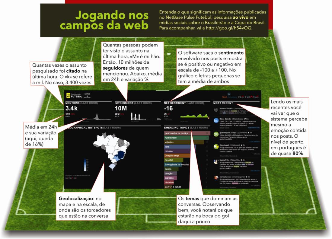 “A lógica do ‘se derrubar na área é pênalti’ se aplica perfeitamente à plataforma, que faz bonito e radiografa todas as menções nas linhas nada demarcadas das redes sociais”, explicou Alexander Kohlitz, CEO da Polis Consulting, que traz o sistema NetBase ao Brasil.
