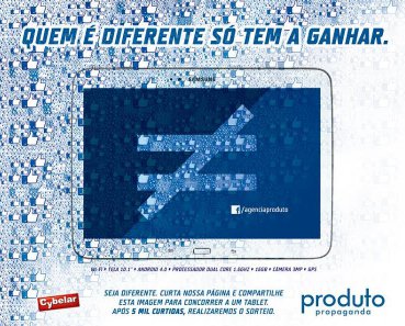 A Produto Propaganda, em parceria com a Cybelar e o Portal FI, está sorteando um tablet Samsung Galaxy Tab 3 através de sua página oficial no Facebook. Para participar basta curtir a página da Produto Propaganda e compartilhar o post da promoção.
