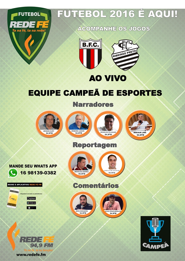 A partida é válida pela 13ª Rodada e na Rede Fé terá a narração de Edson Cury. Para ouvir basta sintoniar 94,9 FM em toda Ribeirão Preto e região. Pela internet acesse www.redefe.fm.