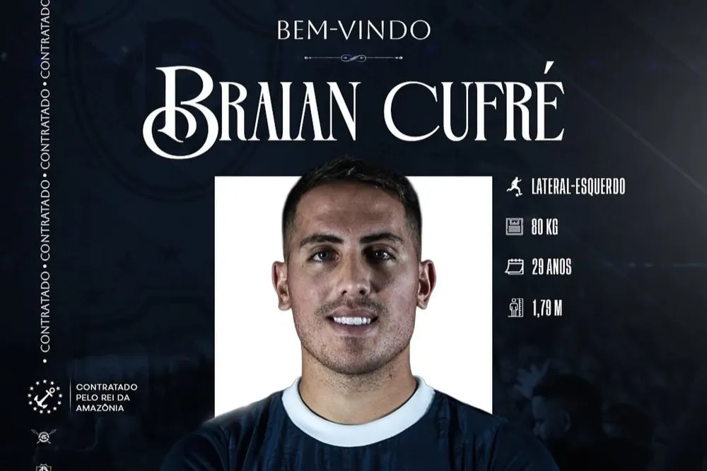 Belém, PA, 27 (AFI) – O Remo oficializou nesta terça-feira (27) a contratação do lateral-esquerdo Braian Cufré, de 29 anos, como mais um reforço para a temporada de 2026. O jogador argentino já está integrado ao elenco azulino e iniciou o processo de adaptação ao novo clube.