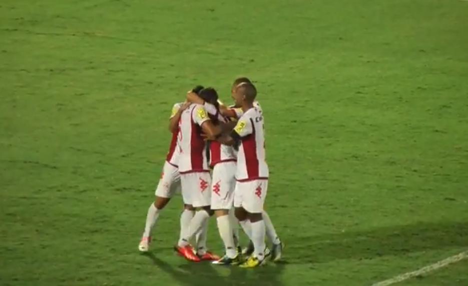 Quando a partida caminhava para um empate sem gols, o atacante Thiago Silvy resolveu aprontar. De muito longe, o atacante arriscou e acertou ângulo do goleiro Wilson Júnior, que foi para a bola apenas para aparecer na foto, aos 37 minutos.
