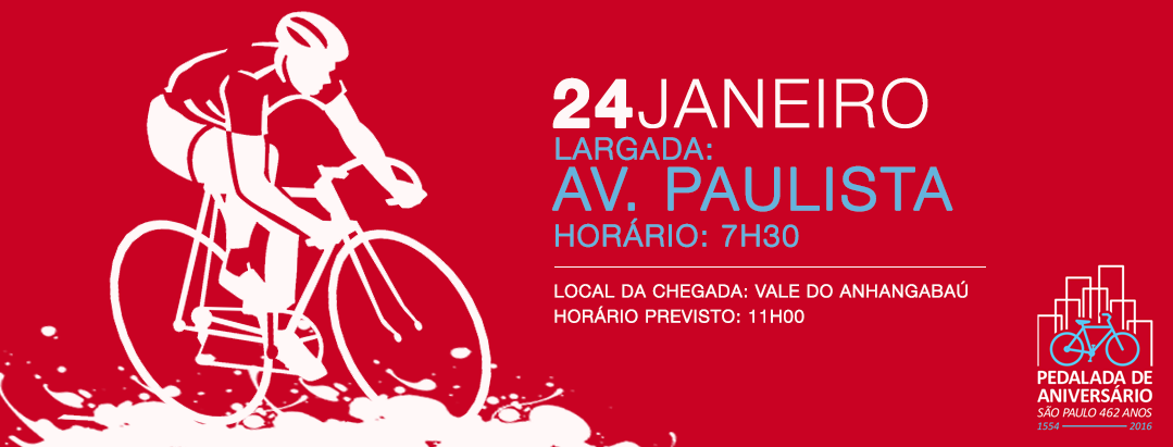A Secretaria Municipal de Esportes realiza no domingo, dia 24 de janeiro, com largada às 7h30, a Pedalada de Aniversário de São Paulo