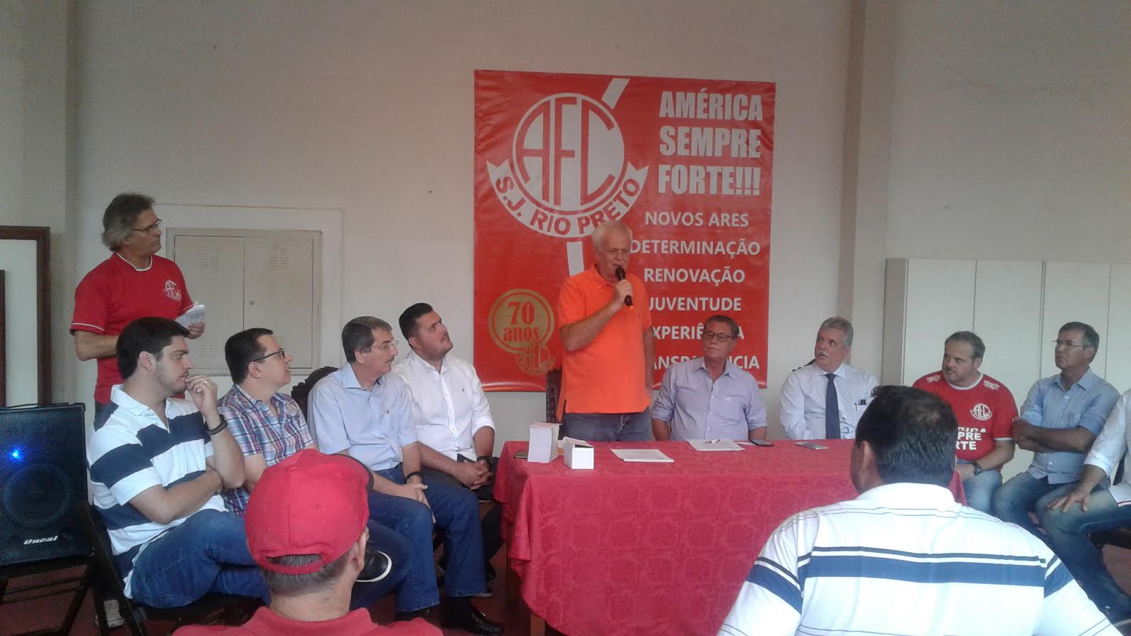 São José do Rio Preto, SP, 24 (AFI) – Na manhã desta quinta-feira aconteceu nas dependências do estádio Benedito Teixeira, o Teixeirão, ocorreu uma reunião de suma importância na sequência da história do América. Depois de mais de quatro décadas disputando a elite do futebol paulista, o time está hoje em situação critica financeiramente e, na última divisão. Contando com vários membros do grupo “América Sempre Forte”, formado por torcedores, sócios, conselheiros e simpatizantes do Rubro, foi debatido muitos assuntos para resgatar a imagem do clube.