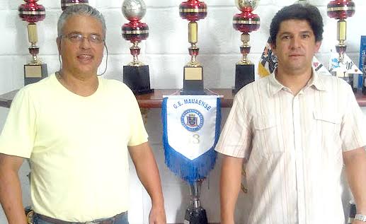 Vitor Mosca e o presidente do Mauaense, Carlos Alberto Capuano