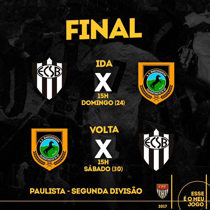 São Paulo, SP, 18 (AFI) – Na manhã desta segunda-feira em uma reunião da Federação Paulista de Futebol (FPF) com os dois finalistas – Manthiqueira e EC São Bernardo – foi decidido as datas e horários dos jogos das finais do Campeonato Paulista da Segunda Divisão. Com o acesso garantido ao Paulista A3, os dois times brigam para conquistarem o primeiro título de suas histórias.