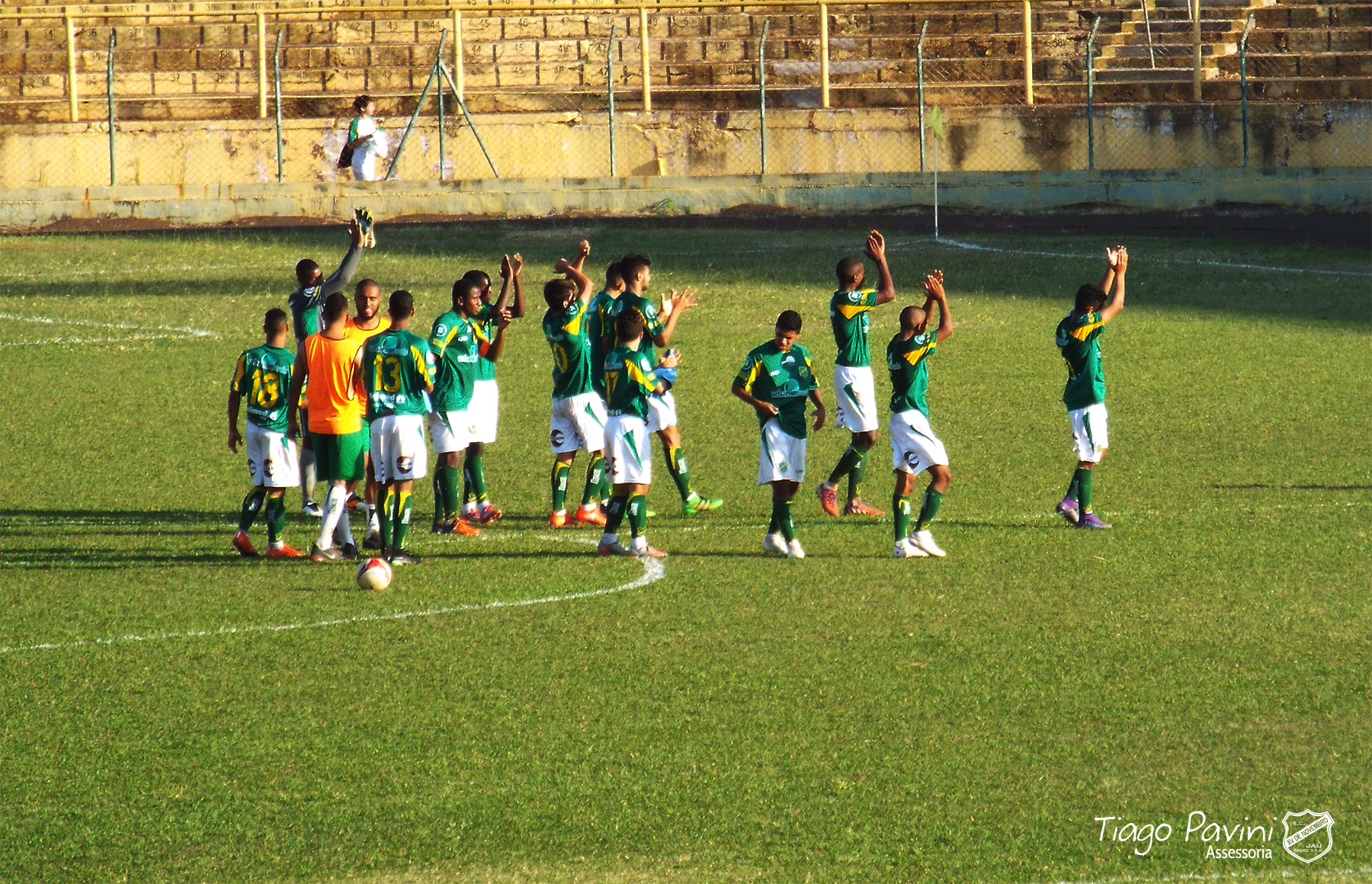 Jogadores do sub20 comemoram vitória por 2x0 sobre o Elosport no último sábado, em Jaú. (FOTO: Tiago Pavini/Assessoria de Comunicação XV de Jaú)