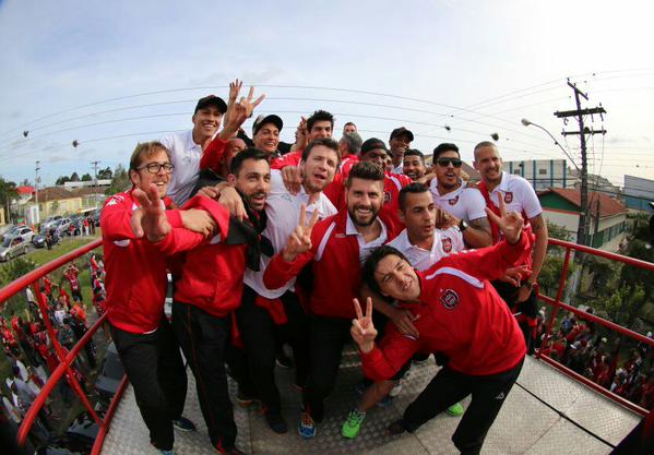 Depois que o imbróglio se resolveu, a festa continuou dentro do estádio. Liderados por Rogério Zimmermann, os jogadores foram direto à tela que separa o gramado da arquibancada provisória para ter um maior contato com os torcedores. Zimmermann e o goleiro Eduardo Martini foram os mais festejados.