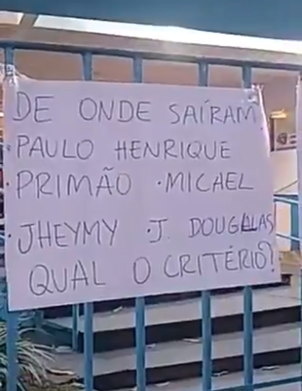 “De onde Saíram? Paulo Henrique, Primão, Micael, Jheimy, Jhony Douglas. Qual o critério”, dizia uma das frases em exposição nas grades da sede. “Felipe Albuquerque, chega de escalar seus projetos de jogador” e “Cadê a evolução” foram outras palavras estampadas.