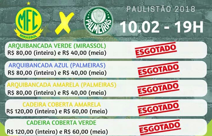 As vendas tiveram início junto com a comercialização da partida entre Mirassol e São Paulo.