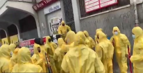 Os torcedores estavam todos de capa amarela e máscaras, além de munidos de vassoura. Eles esfregaram as grades e o chão da parte externa do estádio. O líder do VOX presenciou o protesto dos torcedores.