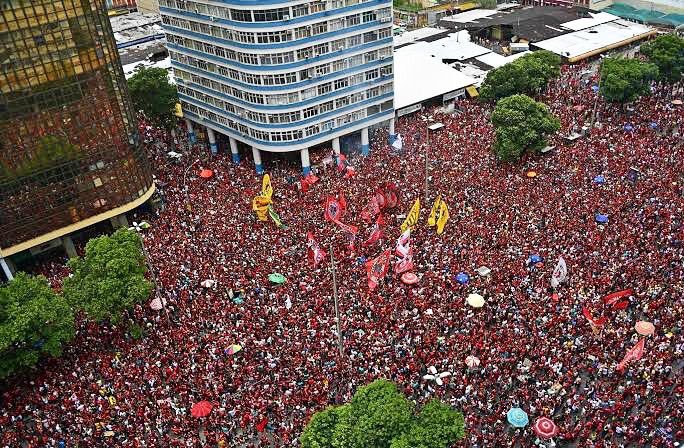 Rio de Janeiro, RJ, 24 – Diz o clichê que o Rio de Janeiro é futebol e carnaval, e o que aconteceu neste domingo no Centro da capital fluminense foi exatamente a união disso. Centenas de milhares de flamenguistas se aglomeraram na Avenida Presidente Vargas para receber o elenco do Flamengo campeão da Copa Libertadores.