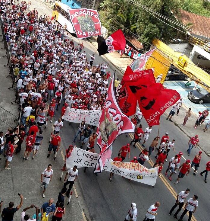 “Ah!, mas que saudade, quando o São Paulo jogava com vontade” e “Vergonha, vergonha, time sem vergonha”, foram cantados repetidamente. Quando o ônibus com a delegação estava chegando ao Morumbi, os cânticos pediam respeito com a camisa do clube.