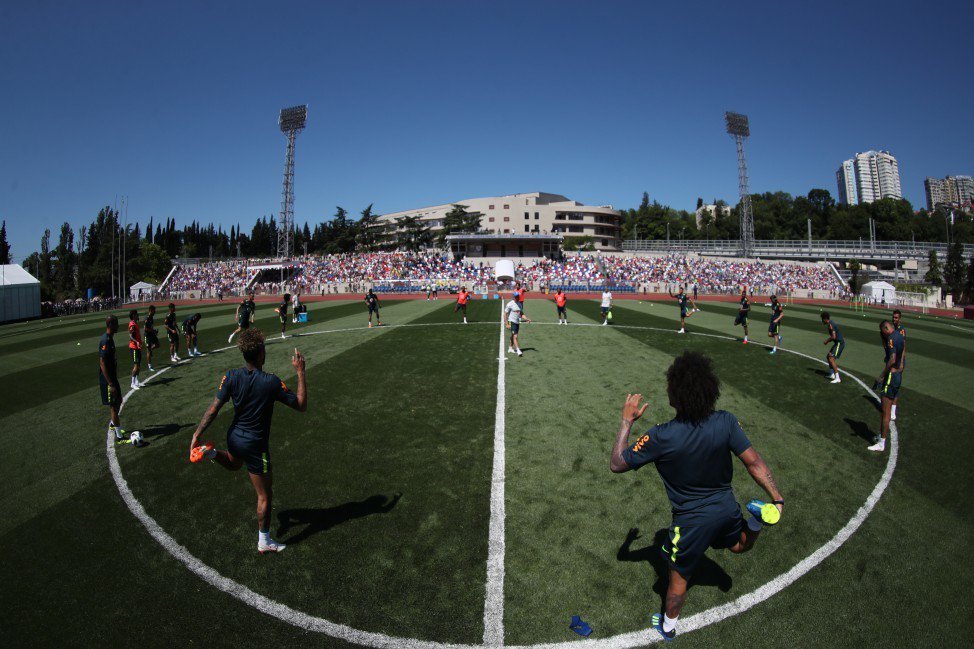 O treino desta terça foi um evento Fifa, e como tal obrigou a seleção a abrir mão de seus trabalhos fechados. A prefeitura de Sochi distribuiu a maior parte dos 4 mil ingressos disponíveis – menos da metade da capacidade do estádio, de 10 mil lugares – para crianças da rede municipal de ensino. Convidados da Fifa e autoridades completaram a plateia.